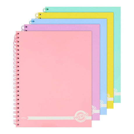 Premto Pastel A4 160pg Spiral Notebook - Asstorted - Pack of 5