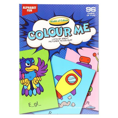 World of Colour A4 Perforated Colour Me Colouring Book - 96 Pages - Alphabet Fun 2