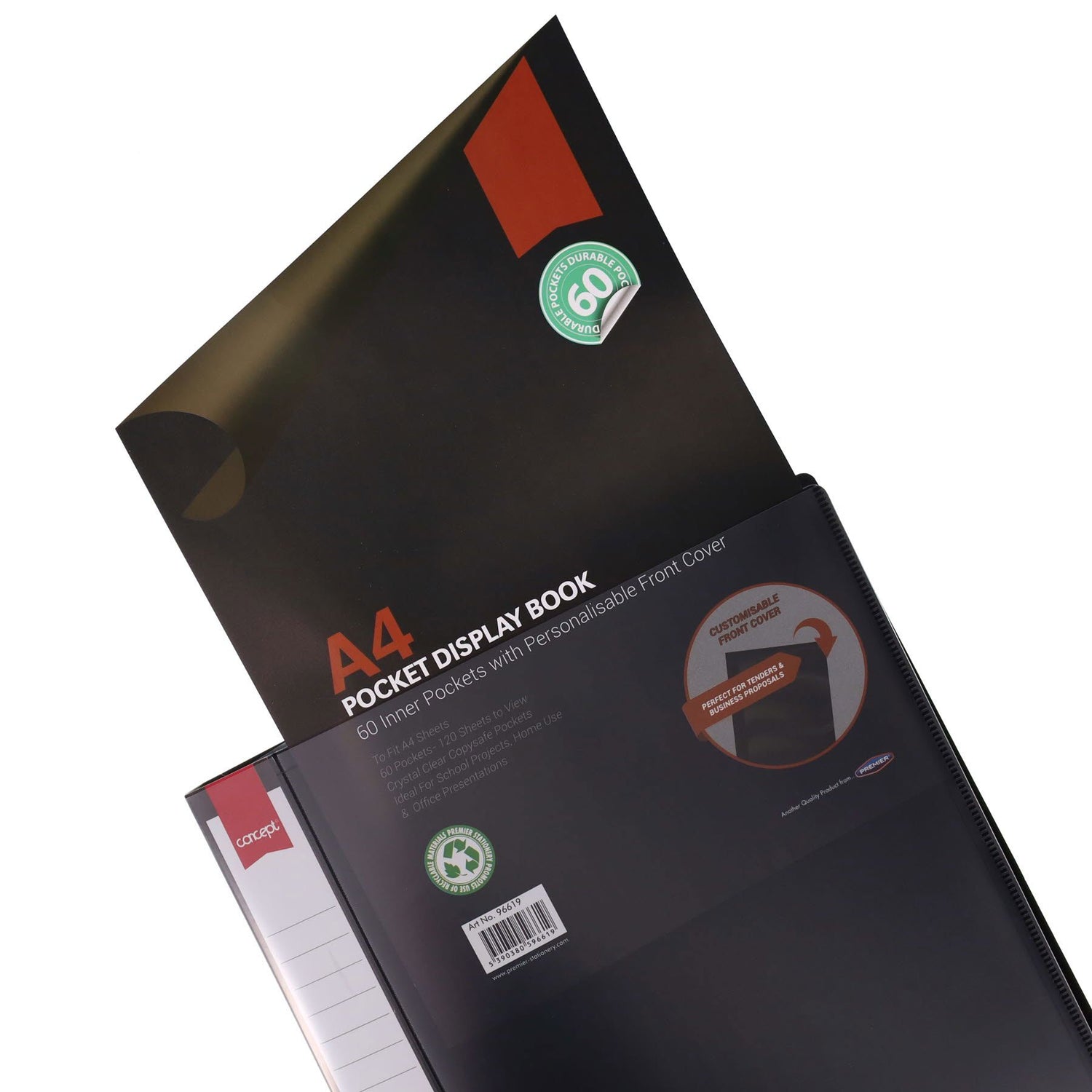 The Concept Display Book supplied in Black has a matte finish, is lightweight with a wipe clean cover. It features an easy file insert feature and has crystal clear internal pockets. Perfect for holding Notes, Paper, Projects, Documents and Certificates.