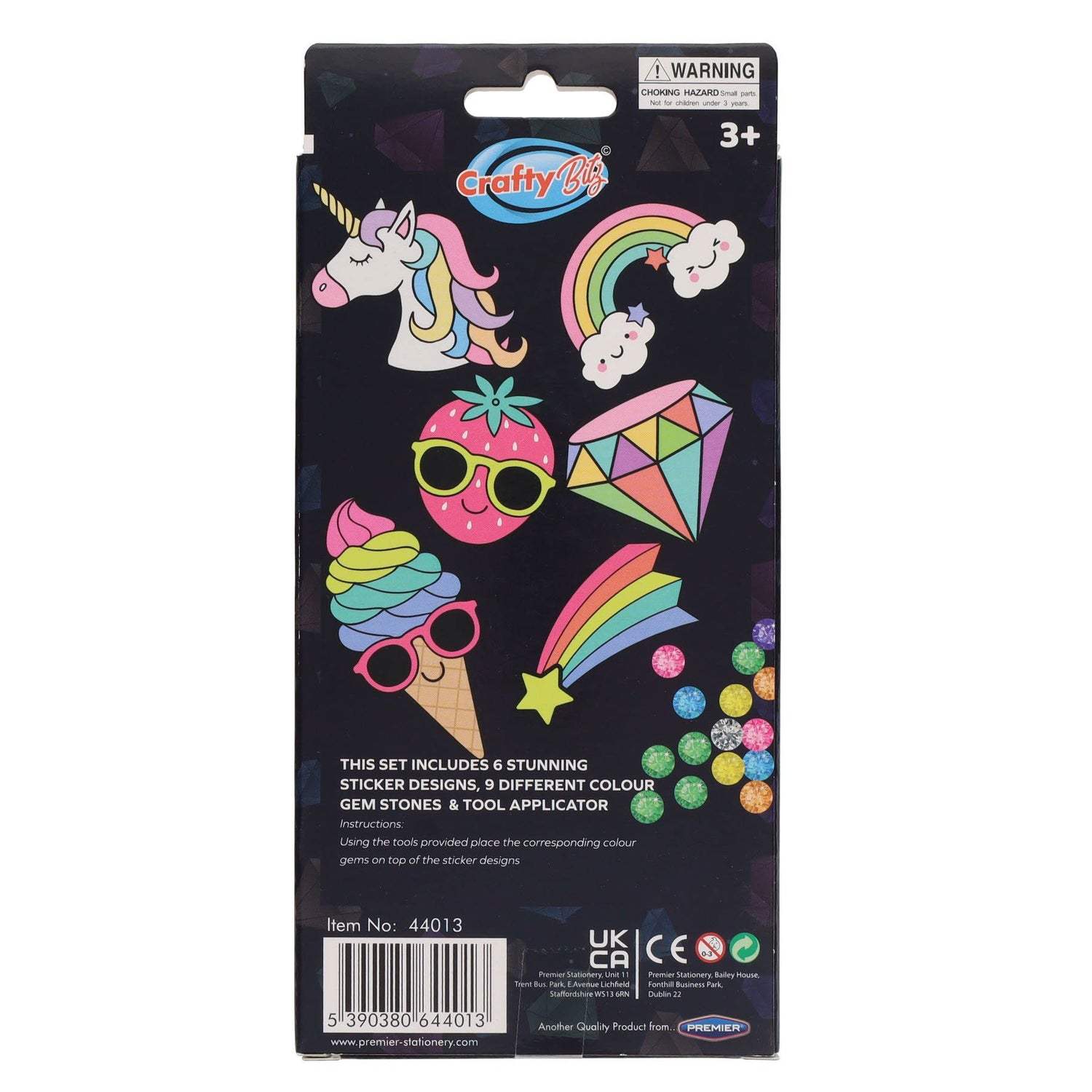 Get ready to embark on a dazzling and creative journey with our Crafty Bitz Create Your Own Gem Art Stickers - Rainbow Magic edition. This pack of 6 enchanting stickers allows you to craft your own sparkling masterpiece, adding a touch of rainbow brilliance to your world. This kit includes everything you need to get started on your crafting adventure. You'll find 6 blank stickers, 9 different colour gems, tool applicator, and easy-to-follow instructions. Whether you're an experienced artist or just starting out, this kit is designed to make crafting a joy.