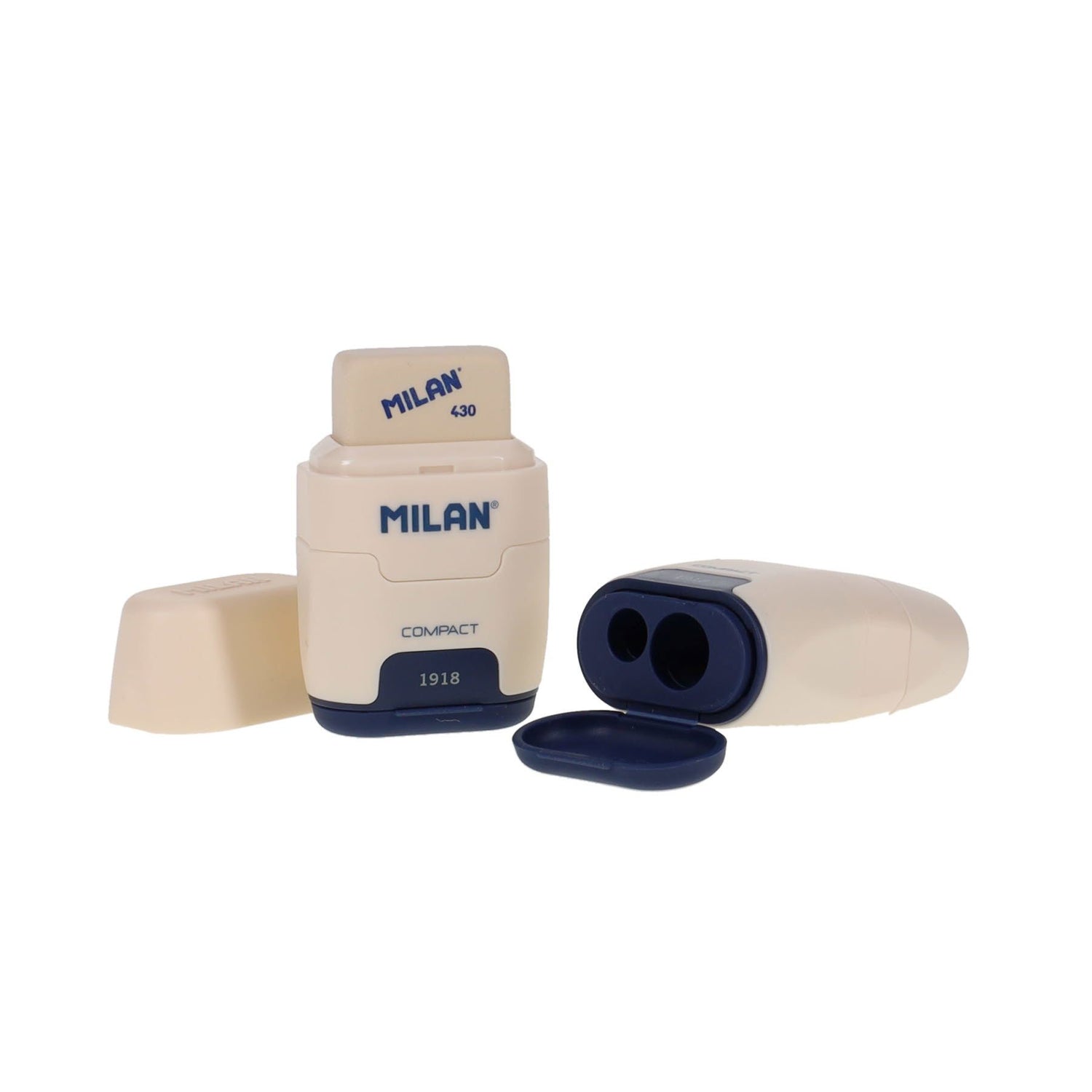 Milan Compact Twin Hole Sharpener & Eraser Matte Finish - Cream