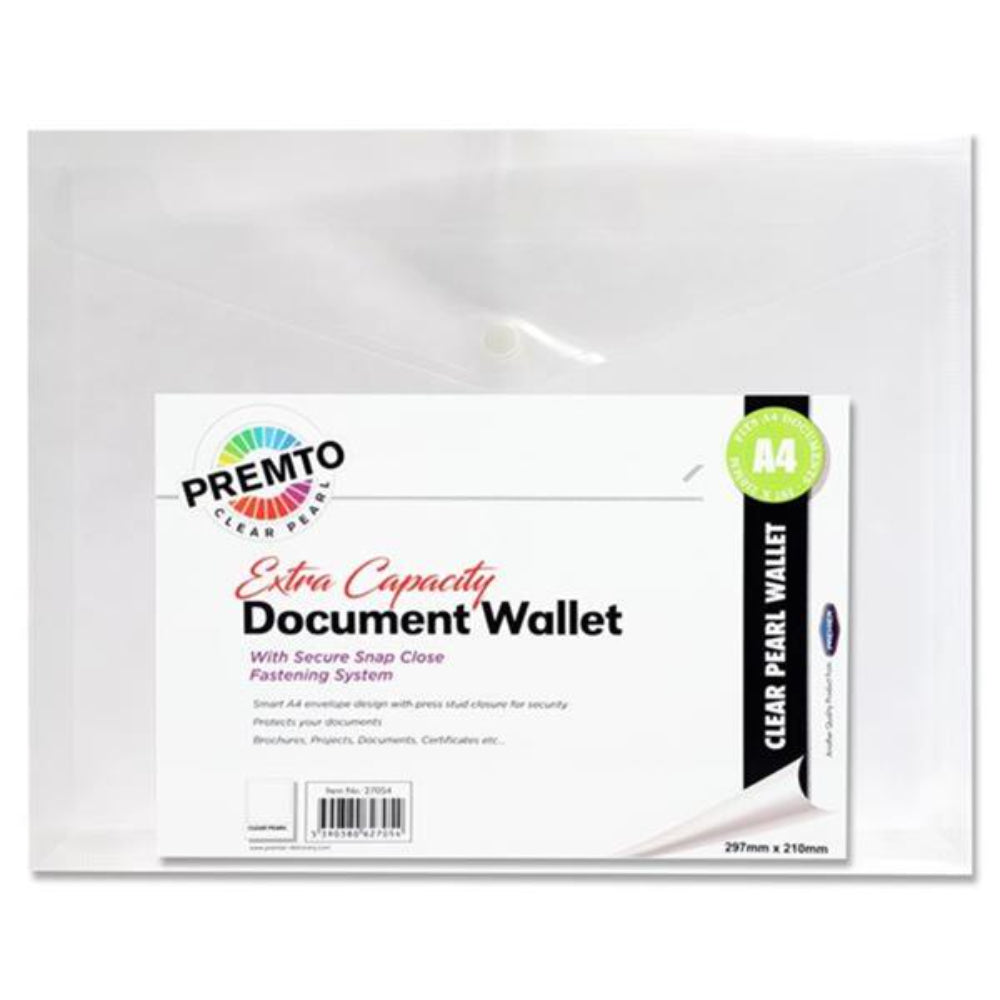 Premto A4 Extra Capacity Document Wallet - Clear Pearl