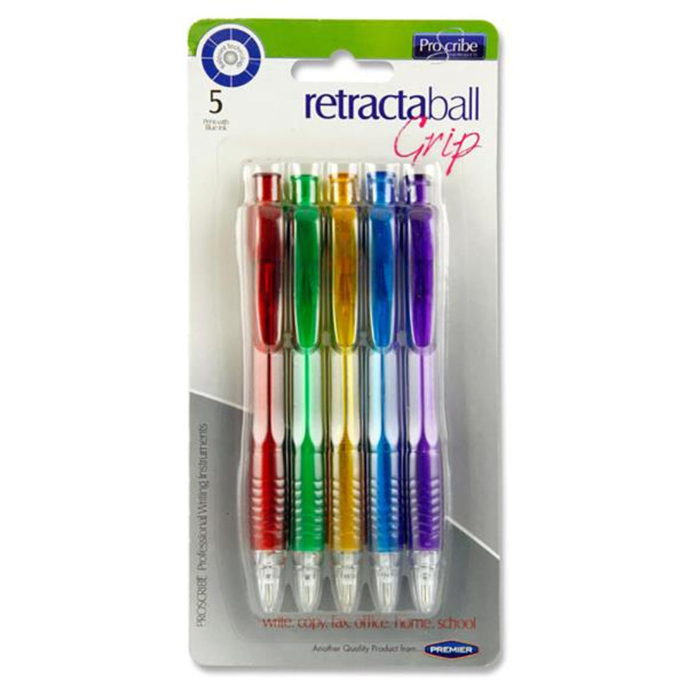 Shop the Pro:Scribe Retractaball Ballpoint Pens - Blue Ink - Coloured - Pack of 5